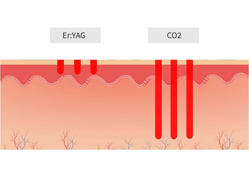 وبالمقارنة مع الأطوال الموجية لأنواع الفراكشنال الأخرى، يتسم ليزر إيربيوم:ياج بشراهة إمتصاص أعلى من قبل الماء، ما يؤدي إلى امتصاص طاقة الليزر بالكامل من قبل الأنسجة السطحية، ويساعد ذلك في تجنب الأضرار الجانبية للحرارة ومخاطِر التصبّغ وبالتالي تقل فترة النقاهة اللازمة.