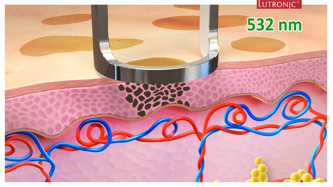 - The treatment works by directing 532nm laser into the upper skin layers. The laser is absorbed by two chromophores: melanin and hemoglobin.