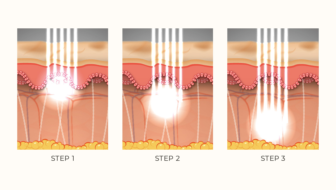 The fractional hand-piece creates a cold mechanical ablation beneath the skin surface while maintaining the integrity of the outmost layer which allows treating conditions like acne scars without any downtime