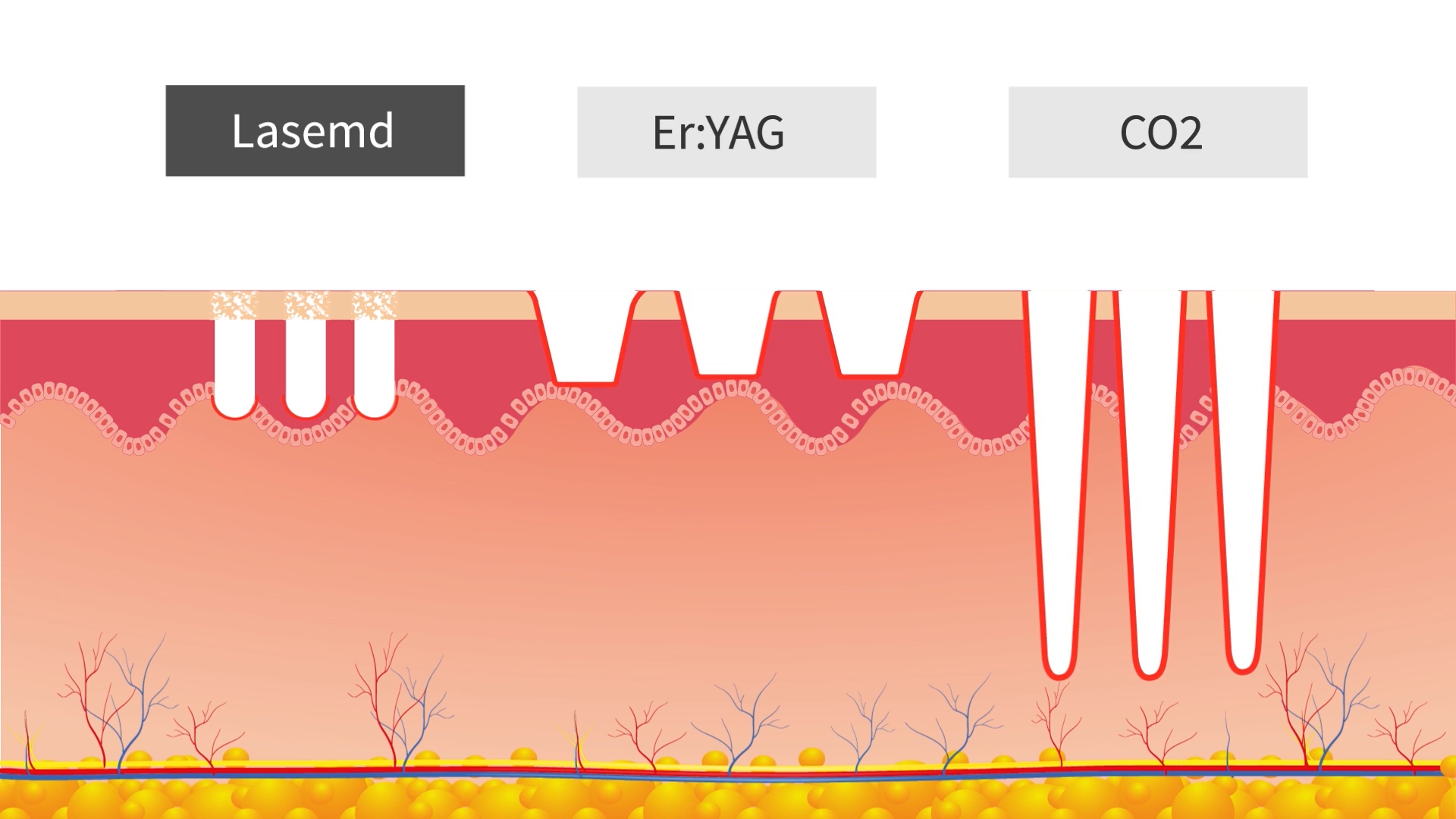 Thulium is a fractional non-ablative laser with more balanced water absorption compared to traditional fractional lasers, the different water content in the skin leads to 3 unique effects by Lasemd:
